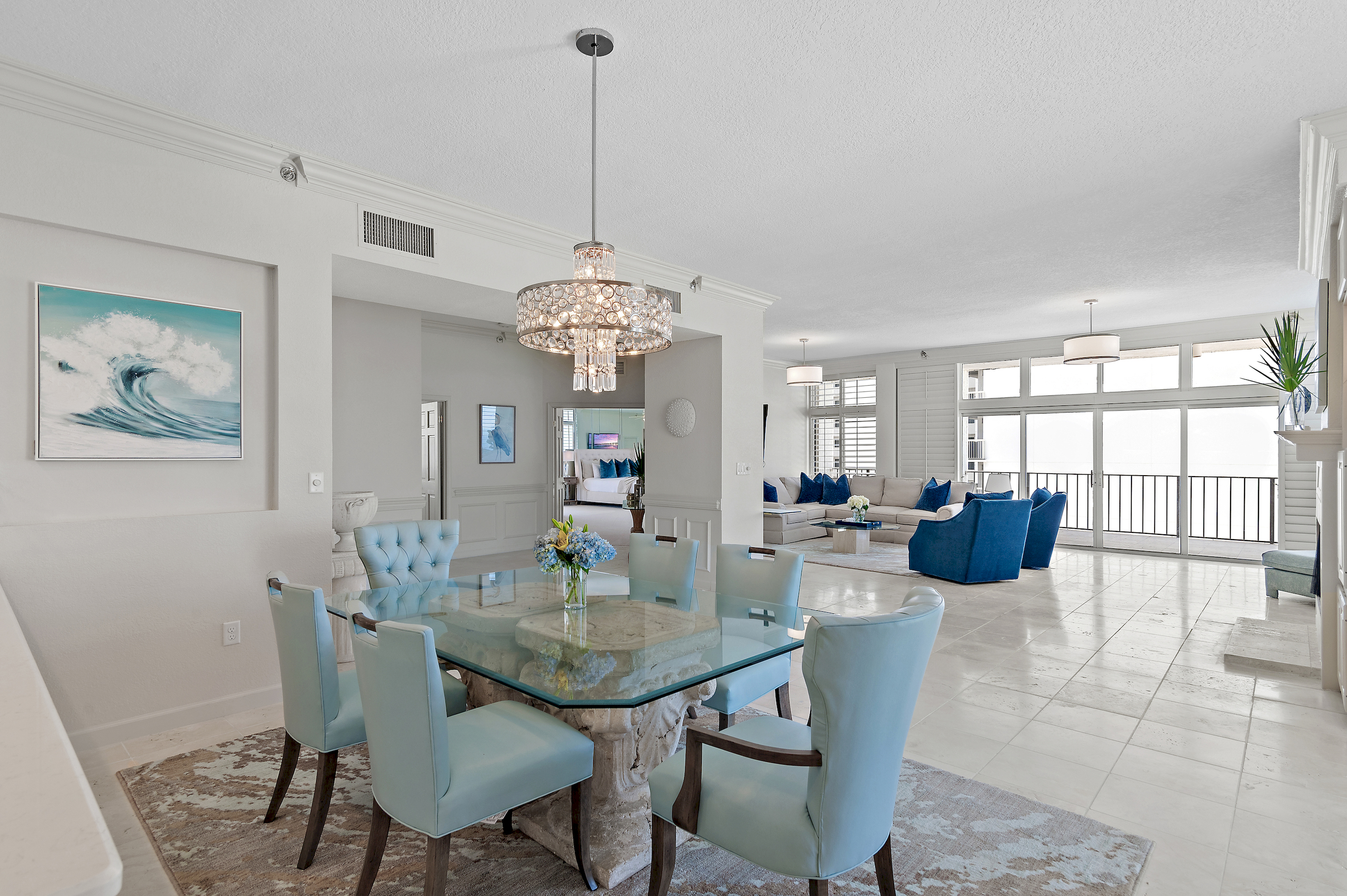 Spanning over 3,600 square feet, the open floor plan includes three bedrooms with sumptuous ensuites, a gourmet kitchen, and living area with direct access to the covered balcony providing a true continuation of living space. The main living and dining areas are anchored by floor-to-ceiling windows perfectly showcasing the views out to sea and surrounding landscape. Tasteful updates coupled with the pristine condition offer a clean slate while remaining configured for immediate enjoyment.